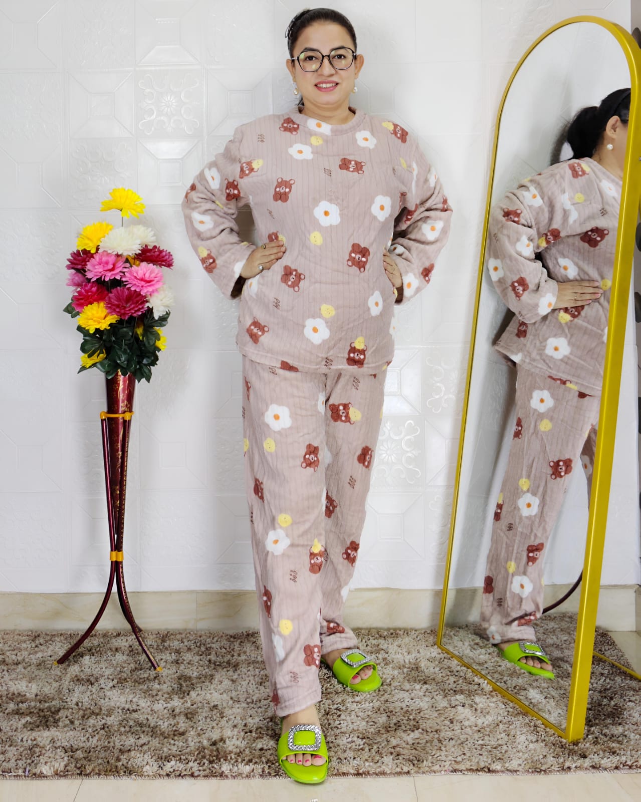 Snuggle up in style with this Premium Printed Winter Night Suit for Women, designed to offer warmth, softness, and a cute cozy look.