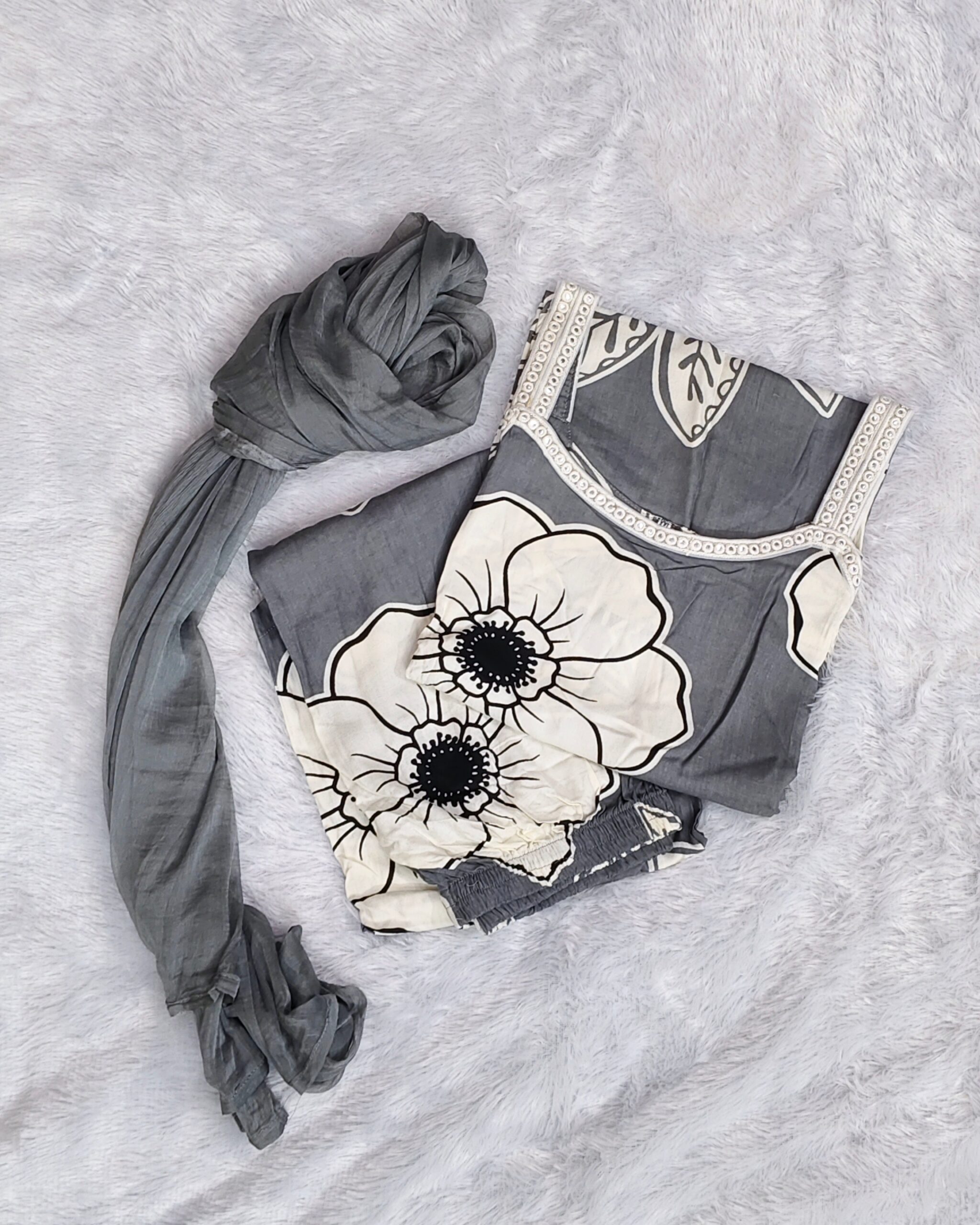 Matching pants with coordinated dupatta