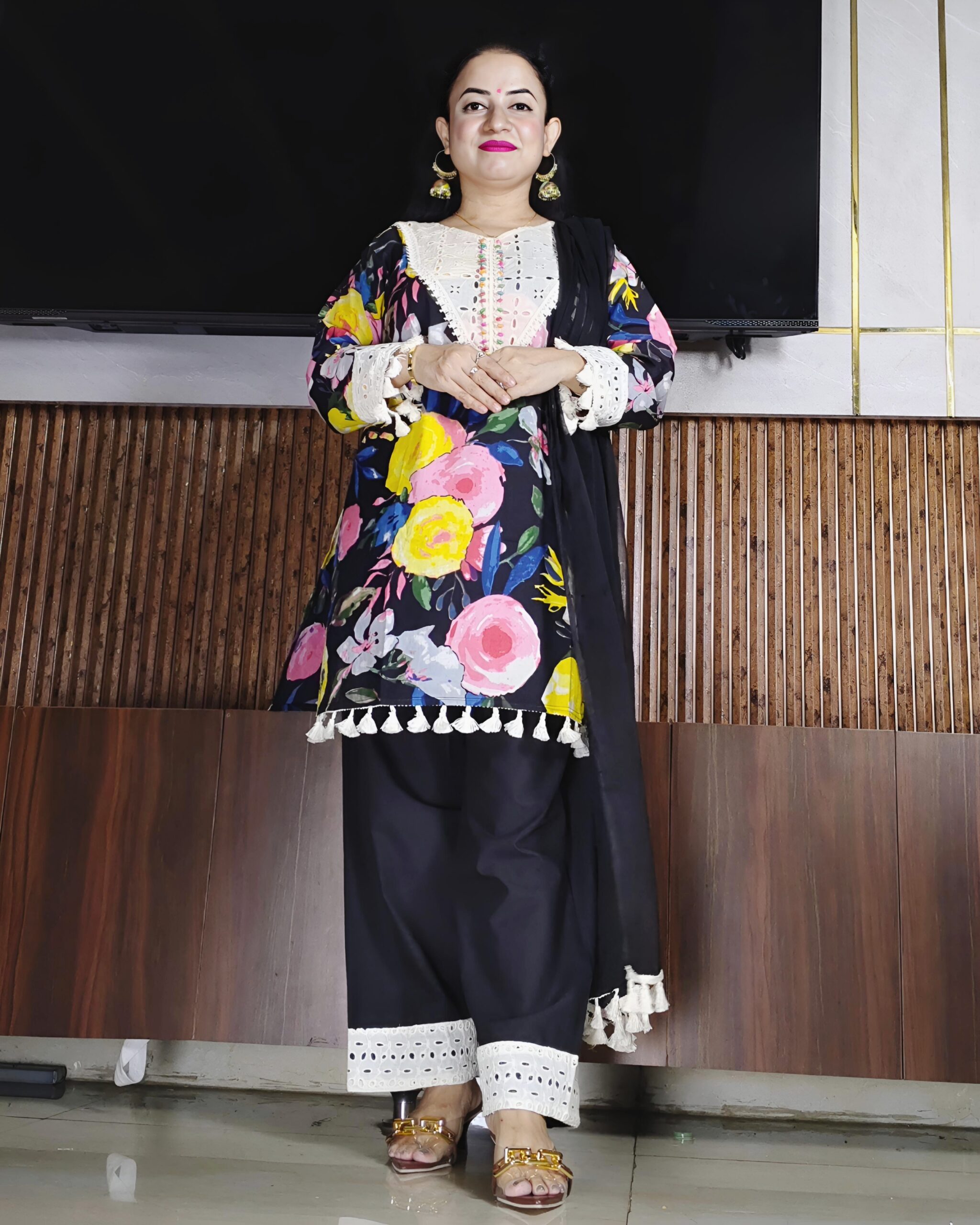 Vibrant floral print for a lively festive vibe