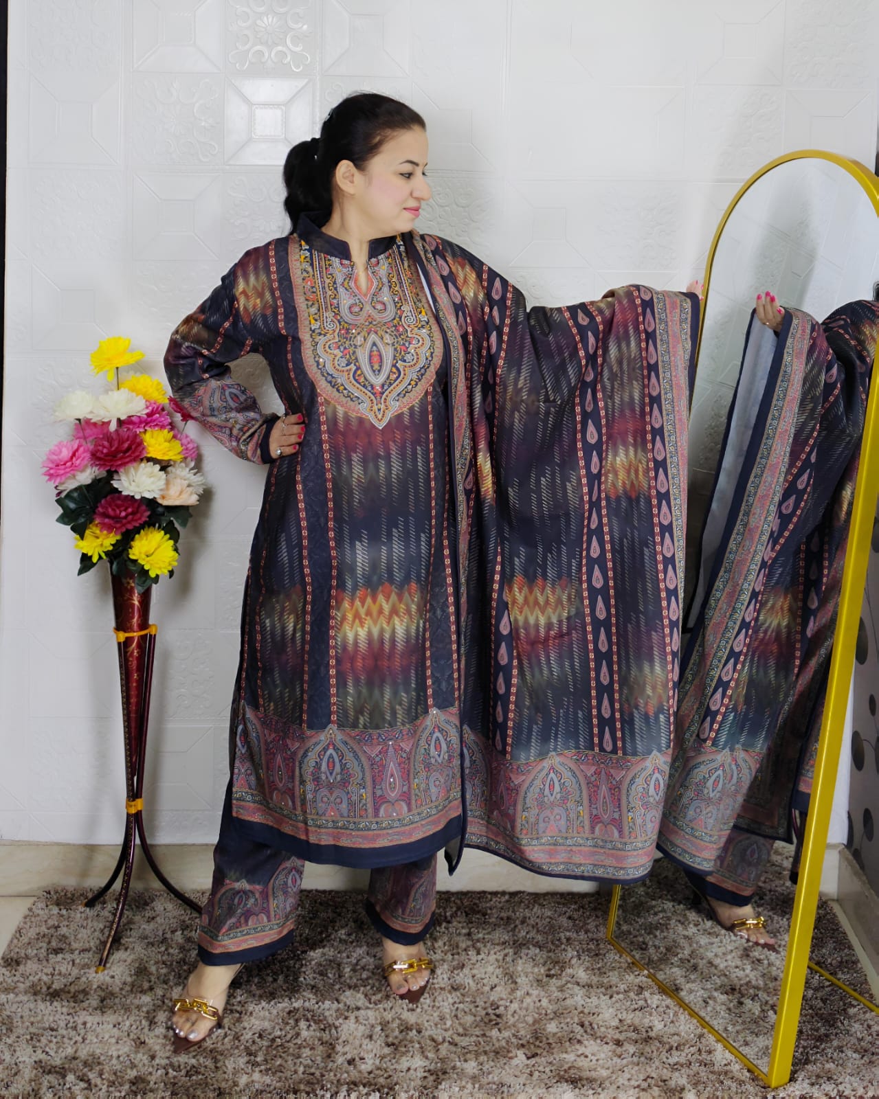 Elegant Pashmina Printed Suit Set for Women with Dupatta – Winter Ethnic Wear